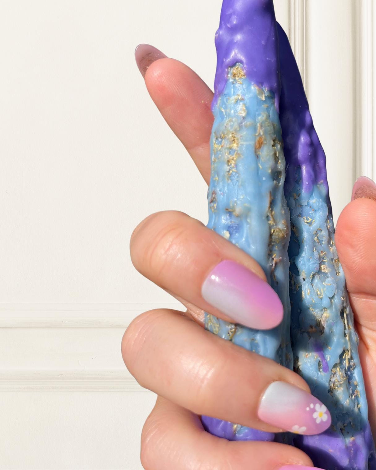 This handcrafted ritual candle features a light blue wax core, symbolizing serenity and emotional healing, and is dipped in soft lavender wax on both ends for a gentle energetic finish. Dressed in a blend of calming herbs and infused with a touch of pure lavender essential oil, this candle is perfect for winding down, quieting the mind, and creating a sacred atmosphere of relaxation. Each candle is hand-poured with natural beeswax, and ritually prepared to help you release tension, ease stress, and reconnect with your inner stillness. Whether you’re meditating, preparing for sleep, or simply seeking a moment of peace, this candle offers a subtle yet powerful energetic companion.